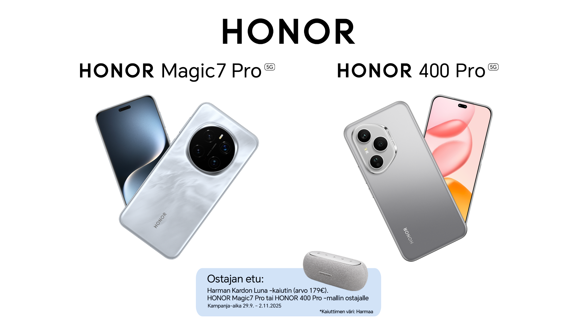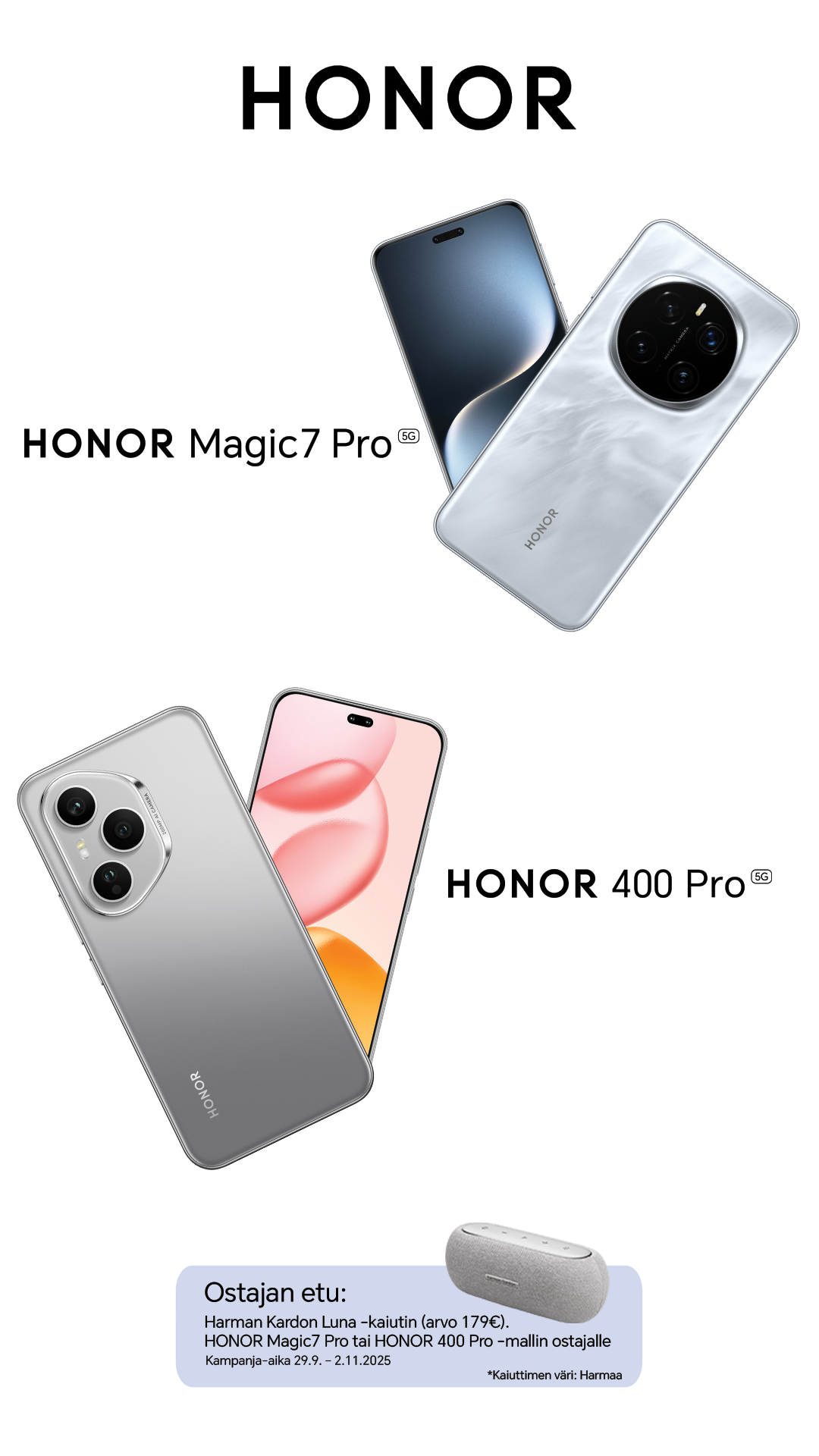 Osta HONOR Magic7 Pro tai HONOR 400 Pro 29.9. - 2.11.2025 välisenä aikana2
